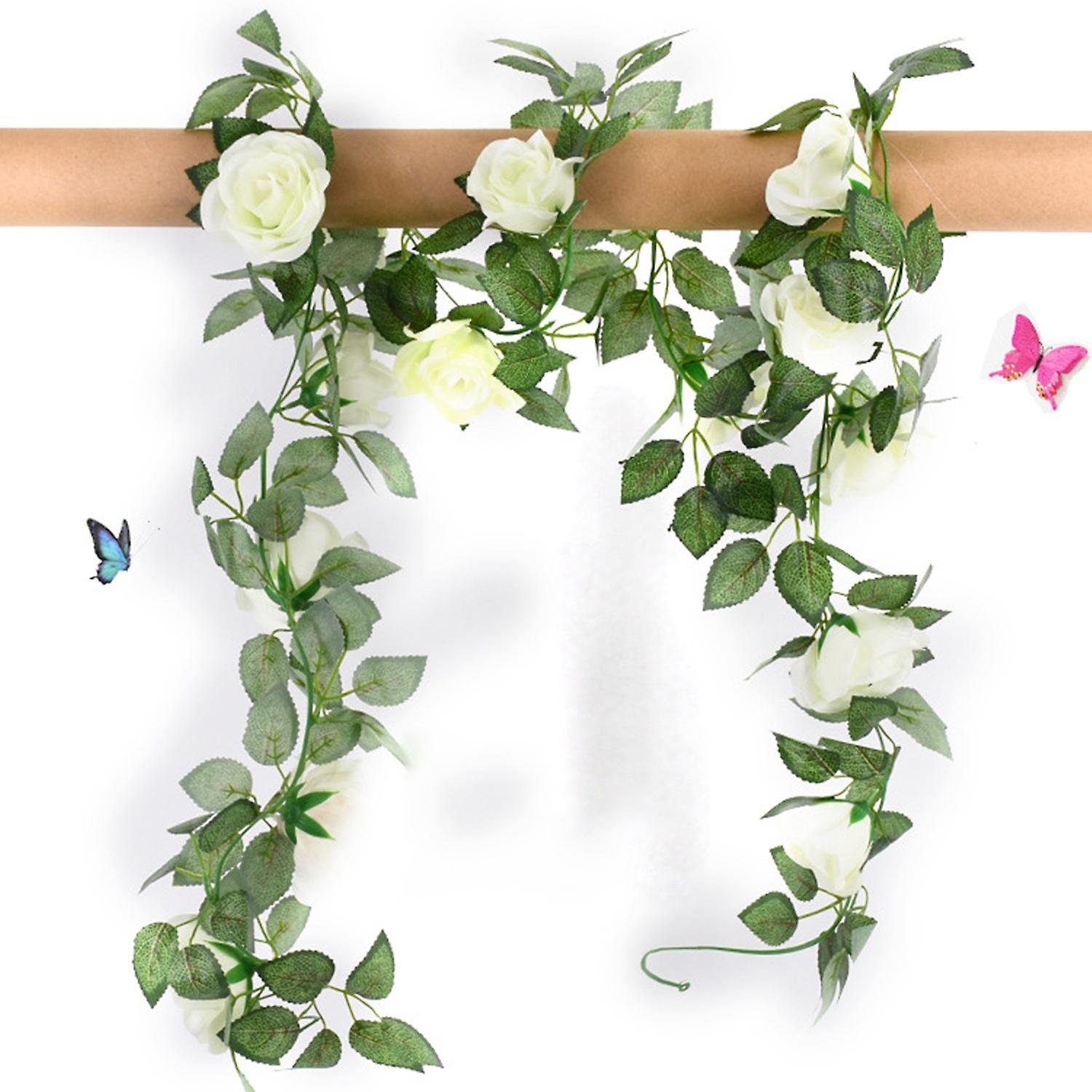 Artificial Flower Realistic Looking Eye-catching Plastic Simulation Rose Flower Vine Decor for Home
