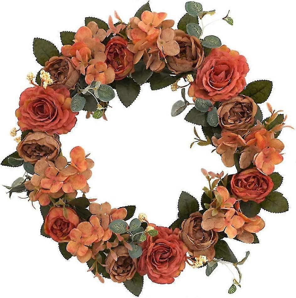 Artificial Flower Garland Lysimachia Ring Field Pendant Door Horntriseur Round Leaf Decoration Wreaths Door Holder Hanging Accessories (color : Orange