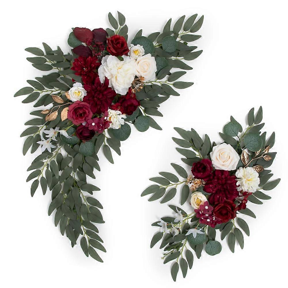 Artificial Flower Swag Wedding Belt Flowers 2 Rose Flower Swag Arrangements Set ( Red)