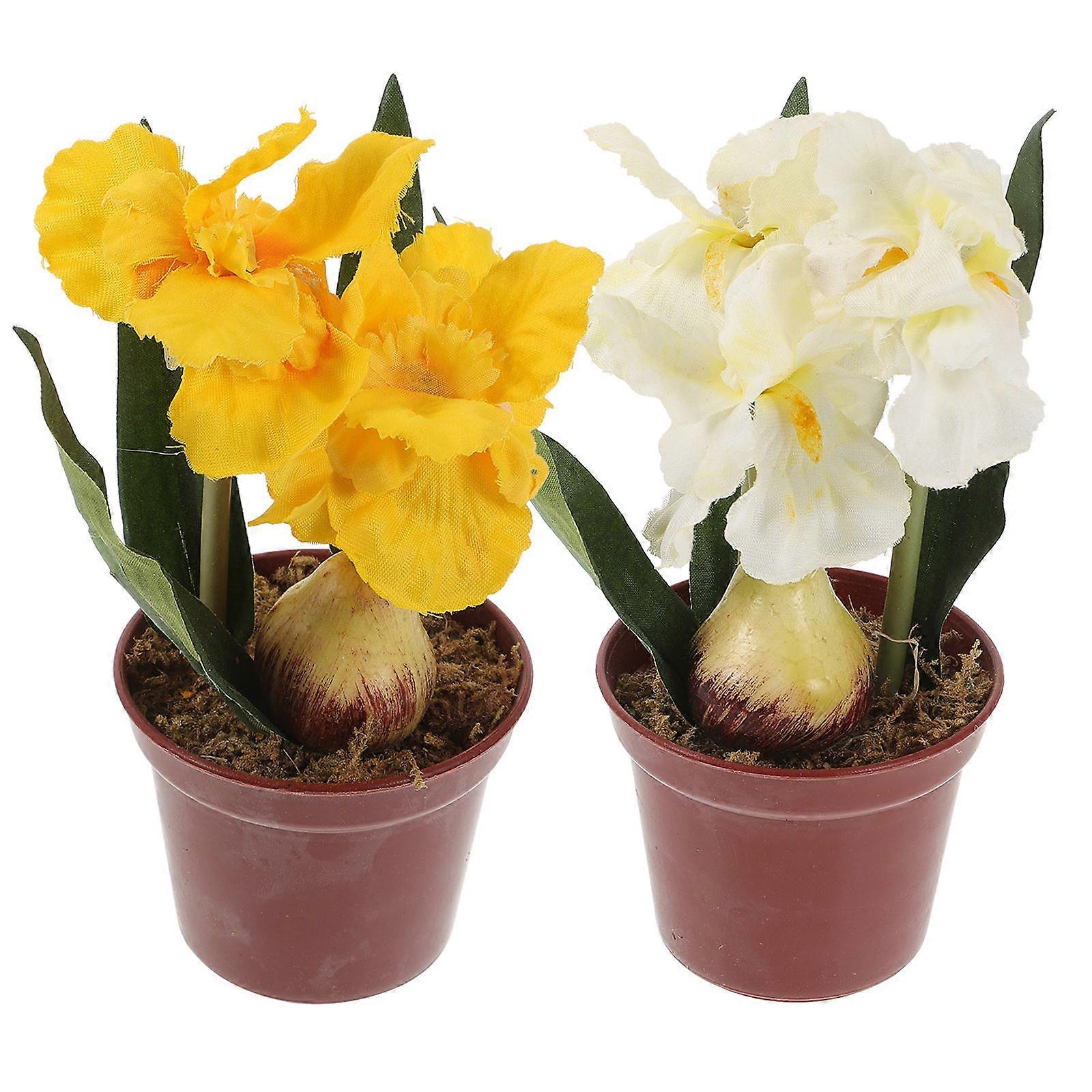 Artificial Flower Desktop Decoration Simulation Potted Plant Office Various Scenes White Silk Cloth 2Pcs