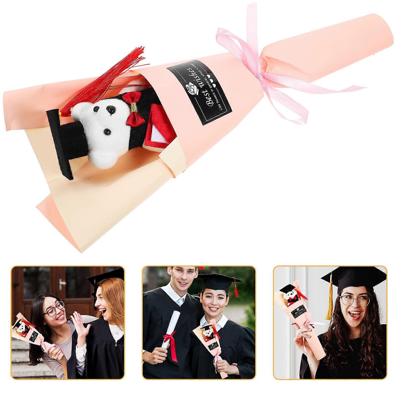 Artificial Flowers Bouquet Mini Plush Graduation Bear Bouquet Ornament Decoration For Graduation Season Pink 33.00X12.00X7.00CM 1Pcs