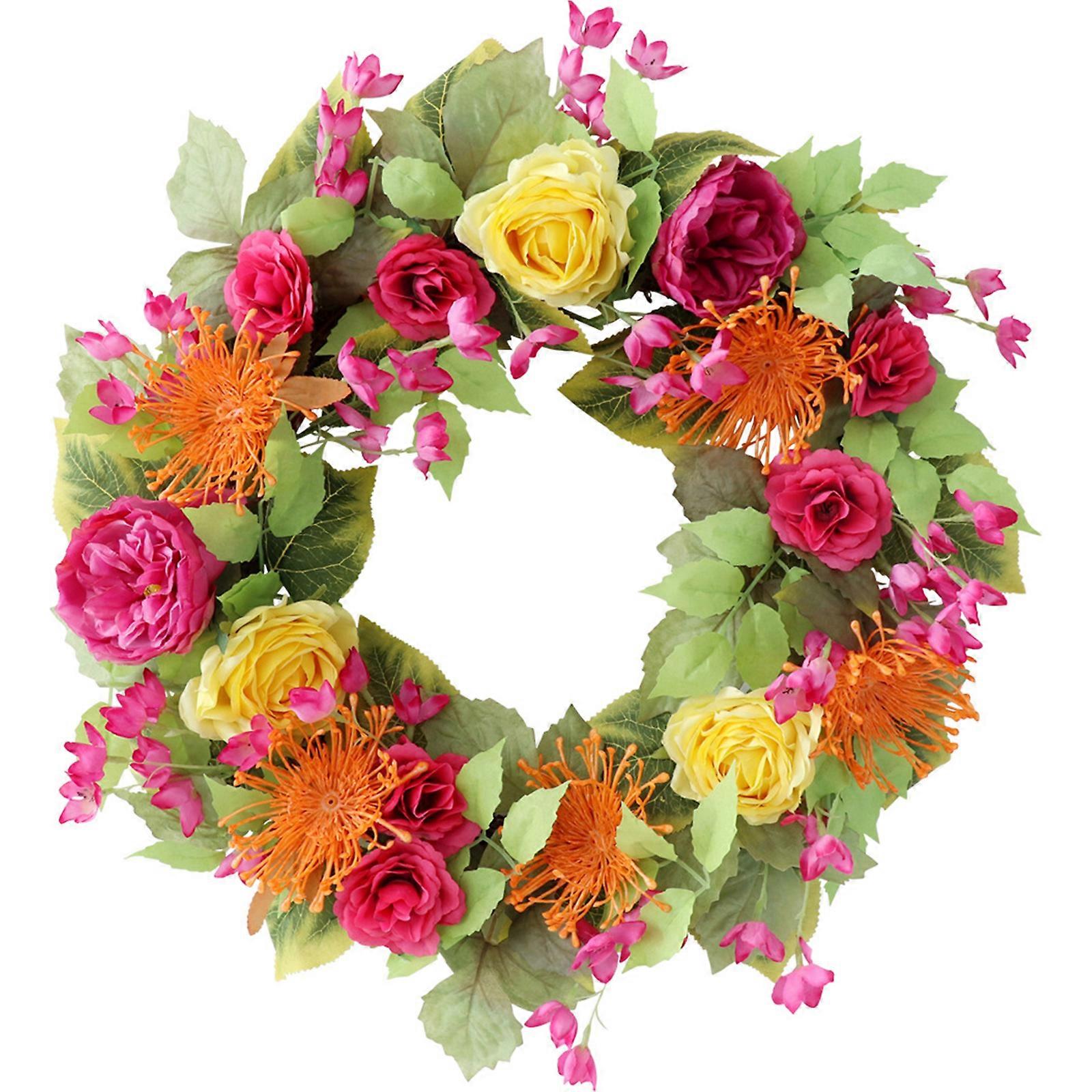 Artificial Flower Wreath Spring Wreath for Front Door Garden Wedding, Front Door Wreath for Indoor and Outdoor