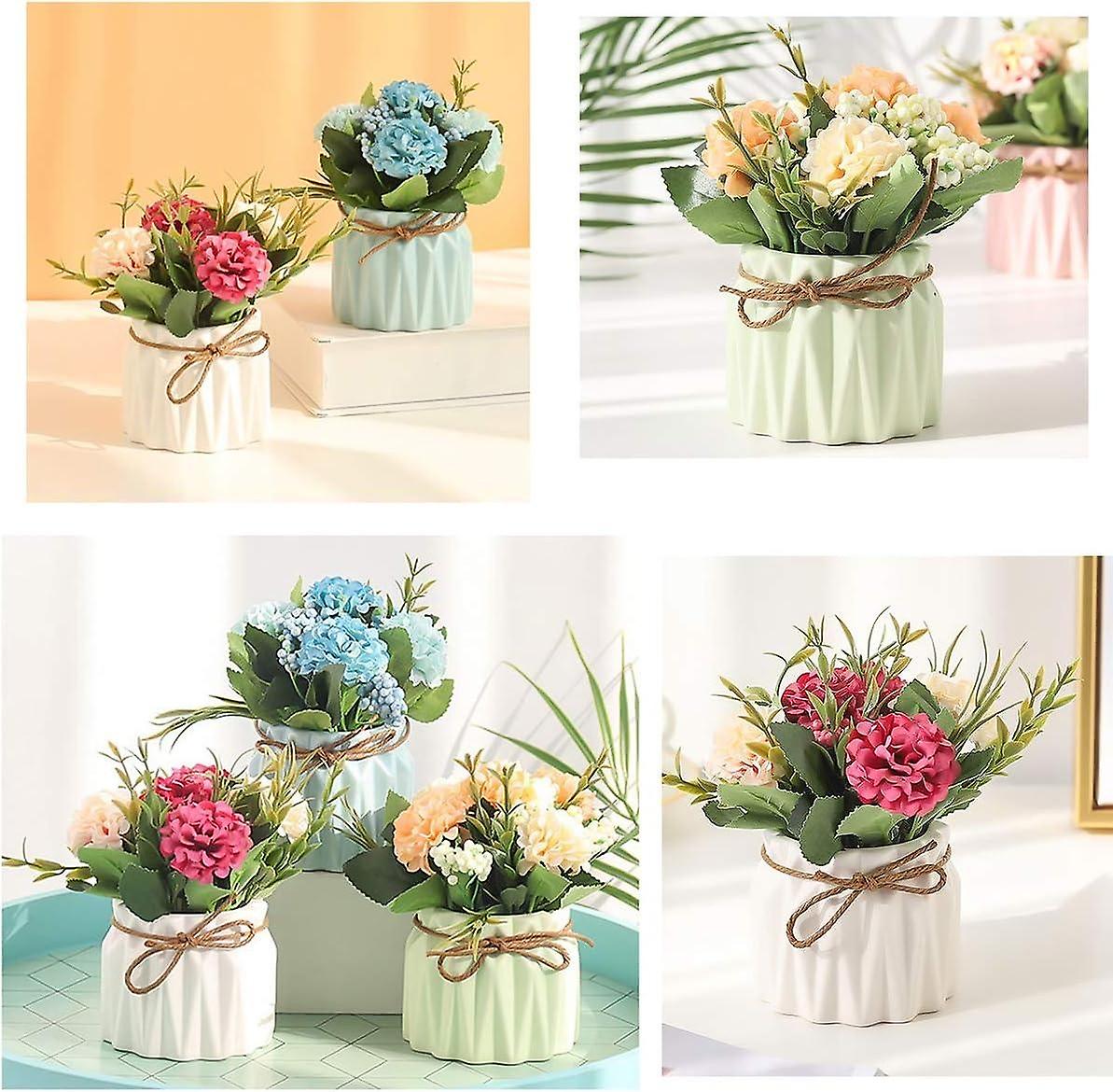 Artificial Flower - Mini Potted Fake Hydrangea Flowers for Wedding Office Home Decor Patio Desk Tabl