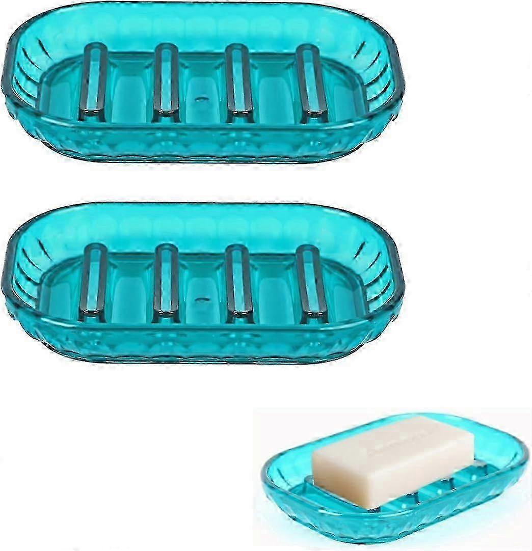 Bar Soap Holder Tray 2 Pack for Suitable Brand, Bathroom Soap Dishes for Shower and Kitchen Sink, Blue Soap Dish for Bar Soap