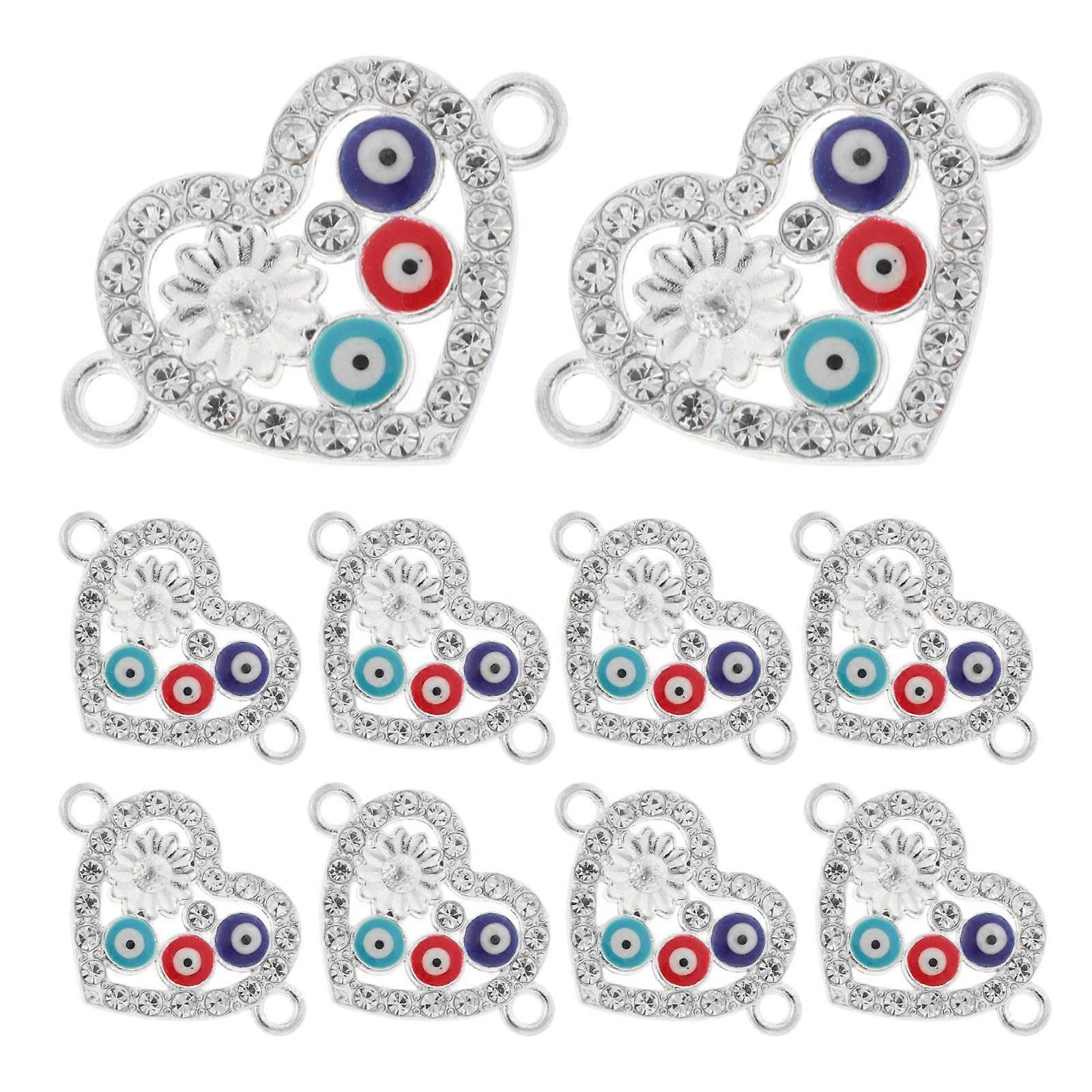 Evil Eye Charms 10Pcs Alloy Heart Shaped Design For Women Jewelry Making Daily Wear Accessories With Silver Finish