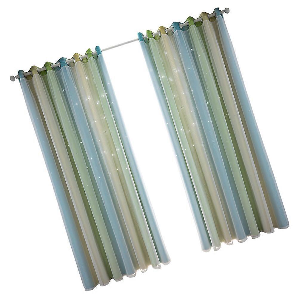 Room Darkening Curtains Gradient Color Double Layer Window Curtains Family Friends Bedroom 130x100cm 2Pcs