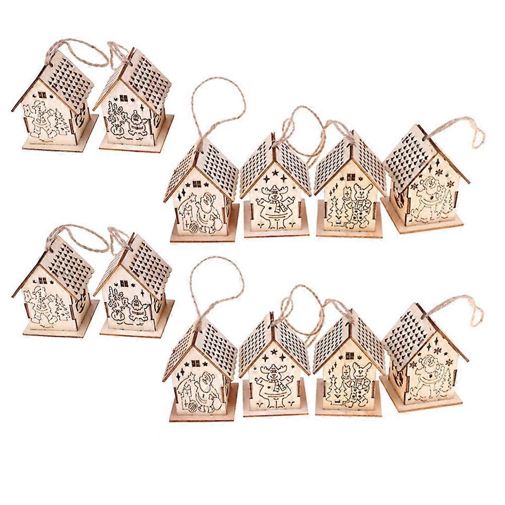 LED Light House Hanging Christmas Tree Decorations For Room Decoration 6x4.5cm Luminous 12Pcs