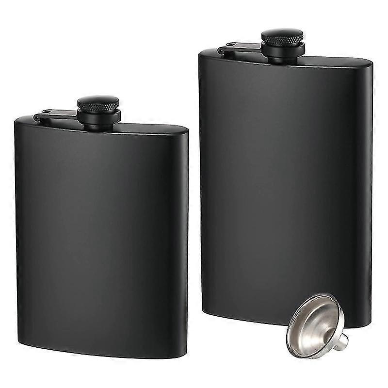 2 Pack Hip Flasks For Liquor, 8 Oz Stainless Steel Leakproof Thin Flasks With Funnel For Men Women (matte Black)