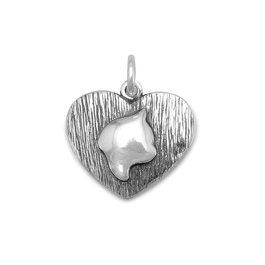 Oxidized 925 Sterling Silver Love Heart Shape Charm Cat Silhouette-Charm 15.5mm X 18.5mm Pendant Necklace for Women