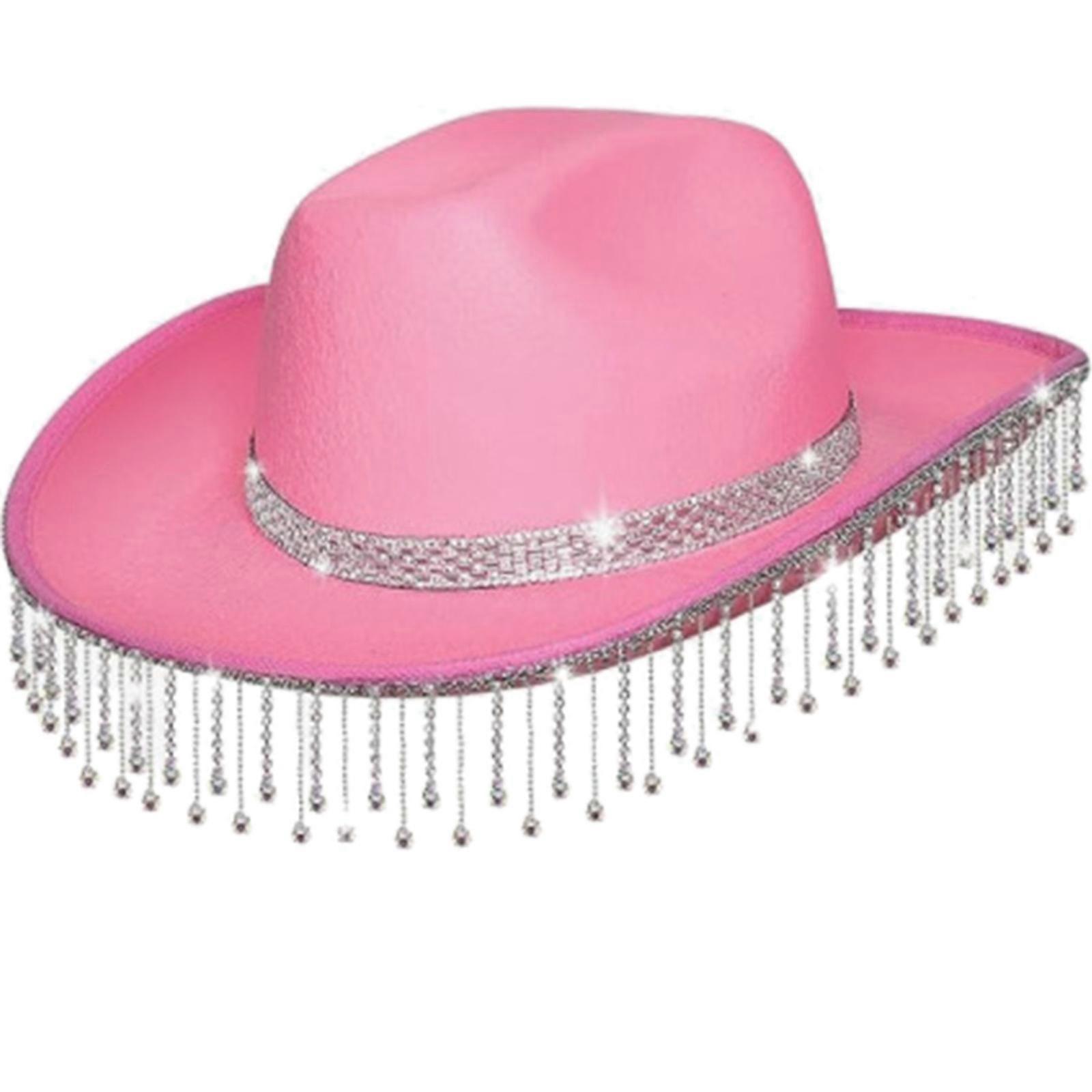 Heavy Diamante Cowboy Hat Tassels Knight Hat for Disco House Cocktail Parties Vacation Sparkly Tassels for Comedian Pink