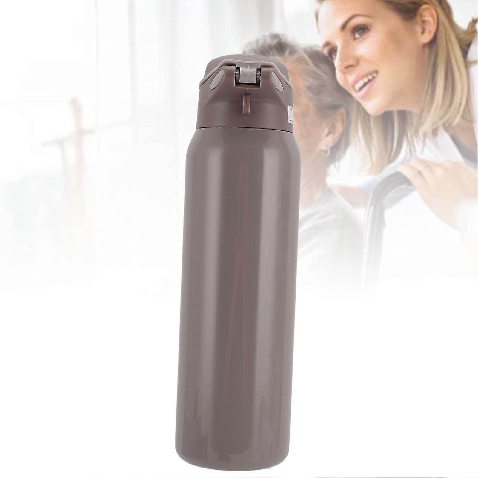 Insulated Stainless Steel Water Bottle with Gravity Ball Straw Vacuum Insulated Bottle for Elderly Brown