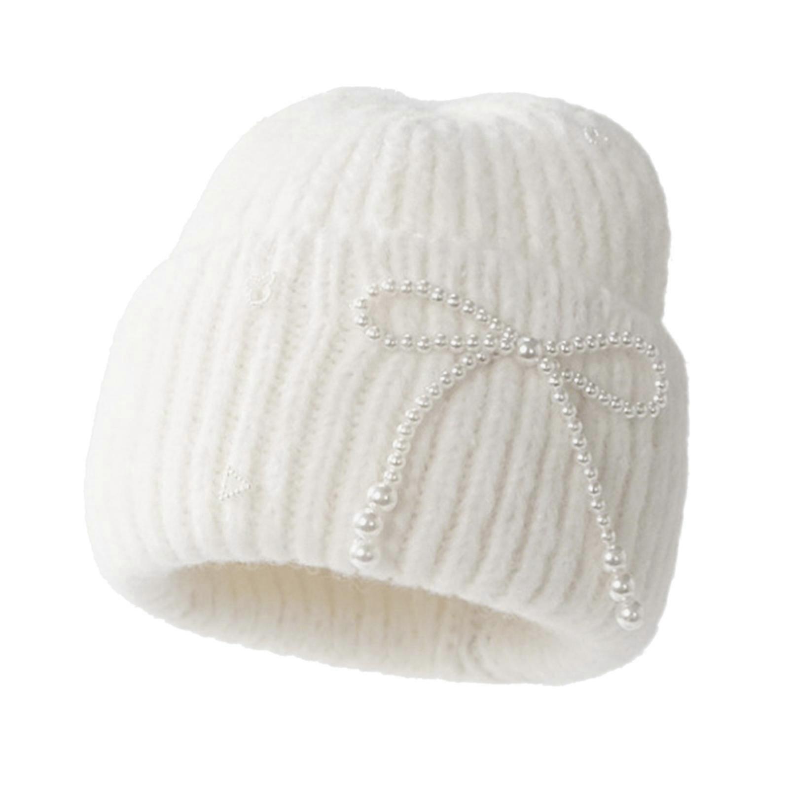 Thick Skull Hat for Outdoor Activity Hat with Bowknot Hat Pullover Unisex Hat Pearls Skull Caps 2000s White