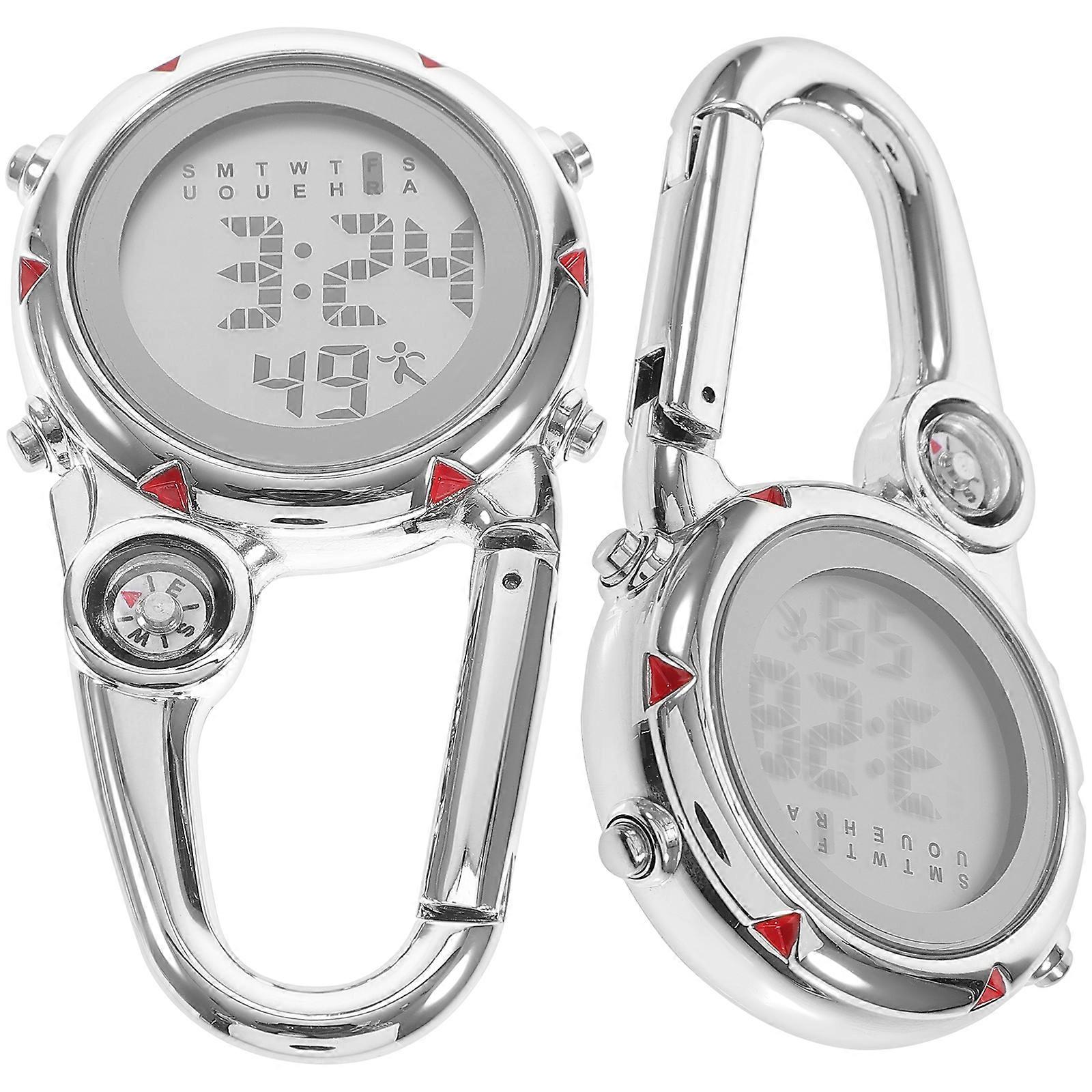 2Pcs Mini Carabiner Watch Clip On Quartz Watch For Outdoor Activities (Red)