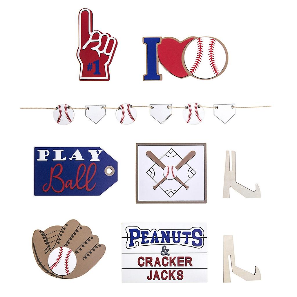 Baseball Tiered Tray Set Home Party Decorative Mini Wood Sign Baseball Family Baseball Game Tiered Tray Ornament set