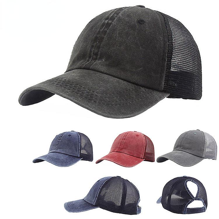 Baseball Hat Cap Casual Sport Outdoor Sun Classic Korean Washed-out Denim Mesh Cap Curved Brim