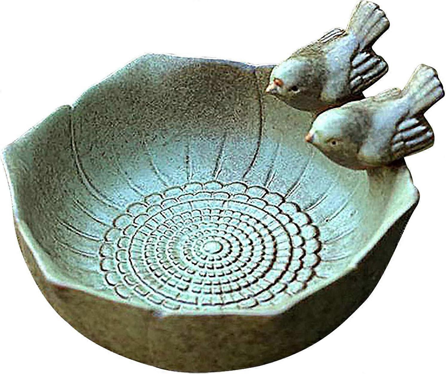 Round Bird Bath with Two Decorative Ceramic Birds for Wild Birds Outdoor Bird Waterer Bird Waterer Outdoor Bird Feeder on Foot