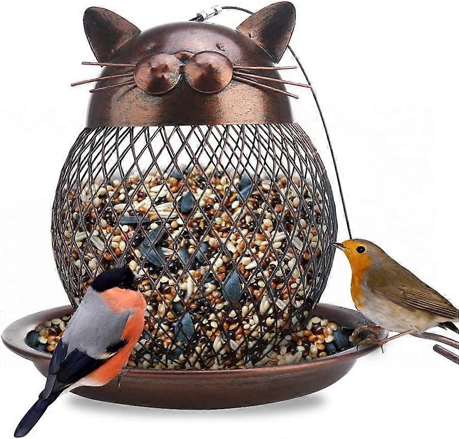 Outside Wild Bird Feeder Heavy Duty Metal Frame Squirrel Proof Bird Feeders Hanging for Garden Yard Outdoor Decoration Cute Cat Shaped