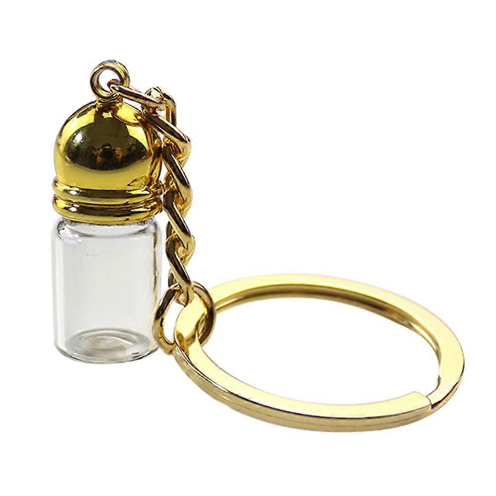 It seems like you're referring to a product listing or description for **small transparent glass bottles keychains** with gold caps, often used as