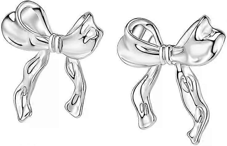 Bowknot ribbon stud earrings, embellished with gold plating, with a playful style