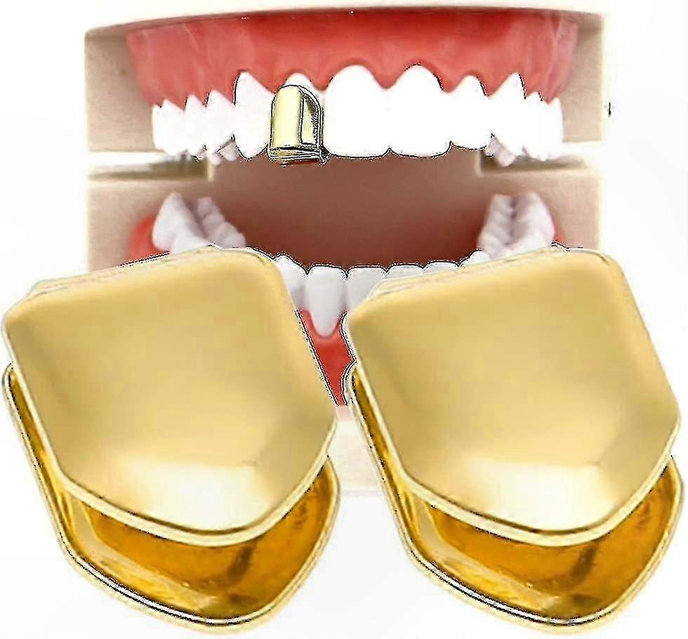 Gold-Plated Teeth Grill Set, 2-Piece Mouth Jewelry for Parties, Single Top Tooth Cap Accessory
