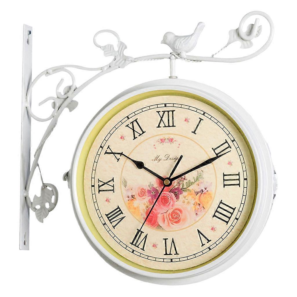 Metal Double Sided Hanging Clock Livingroom Garden Decoration for Cafes, Club,