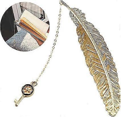 Metal feather shaped bookmark 11.4 * 2.3 cm, golden retro bookmark creative shell key bookmark for men and women readers, teenagers, boys and girls, c