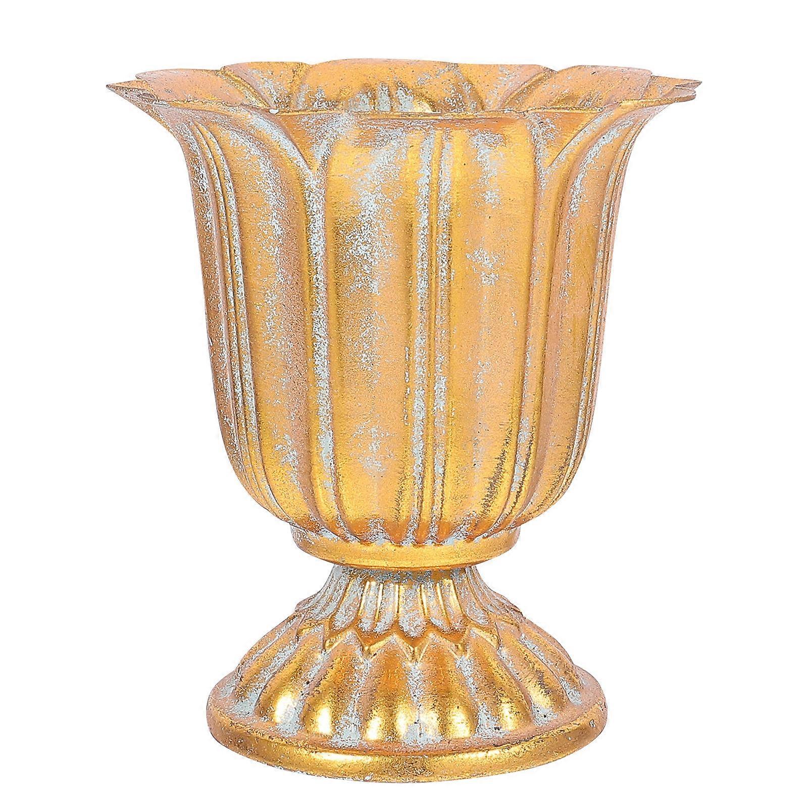 Metal Flower Floor Vase Iron Art Vase Household Item Indoor Decoration Golden 13x12cm Flower Arrangement 1Set