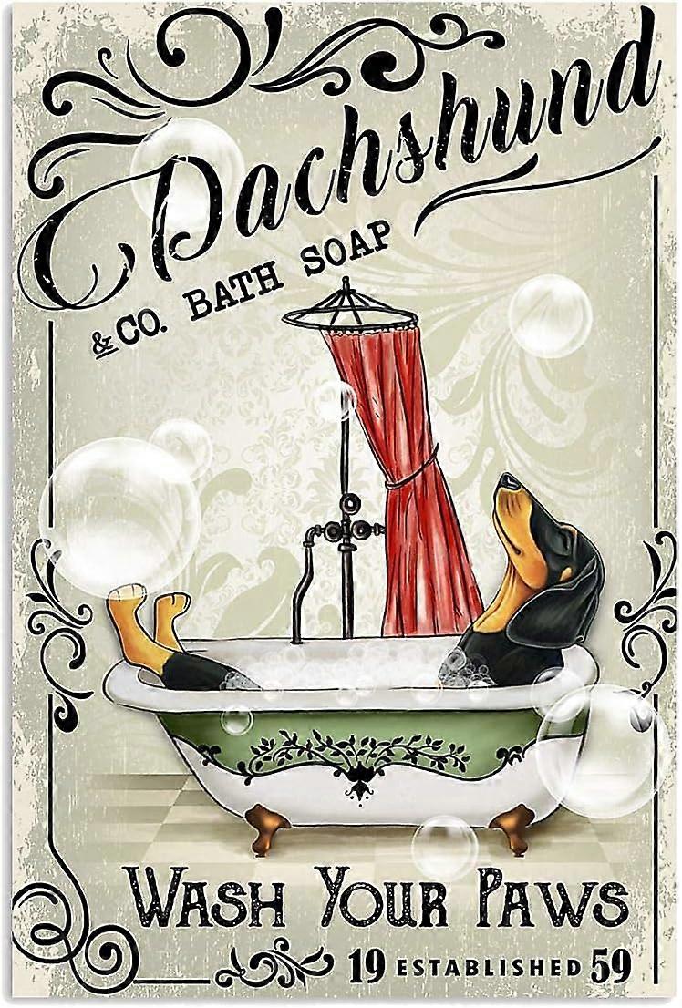Metal Tin Signs Dachshund Bath SOAP WASH Your Dachshund Funny Bathroom Quote Art Picture Decor Poster Man cave Decoration 12x8 inch