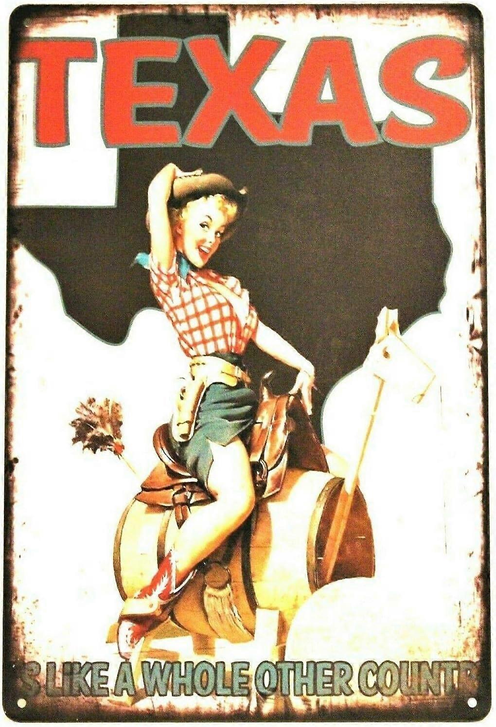 Metal Tin Sign Vintage Art Decoration Texas Pinup Girl for Cofe Home Kitchen Farm Office Bar Restaurant Dorm Club or Garage 12" X 16"