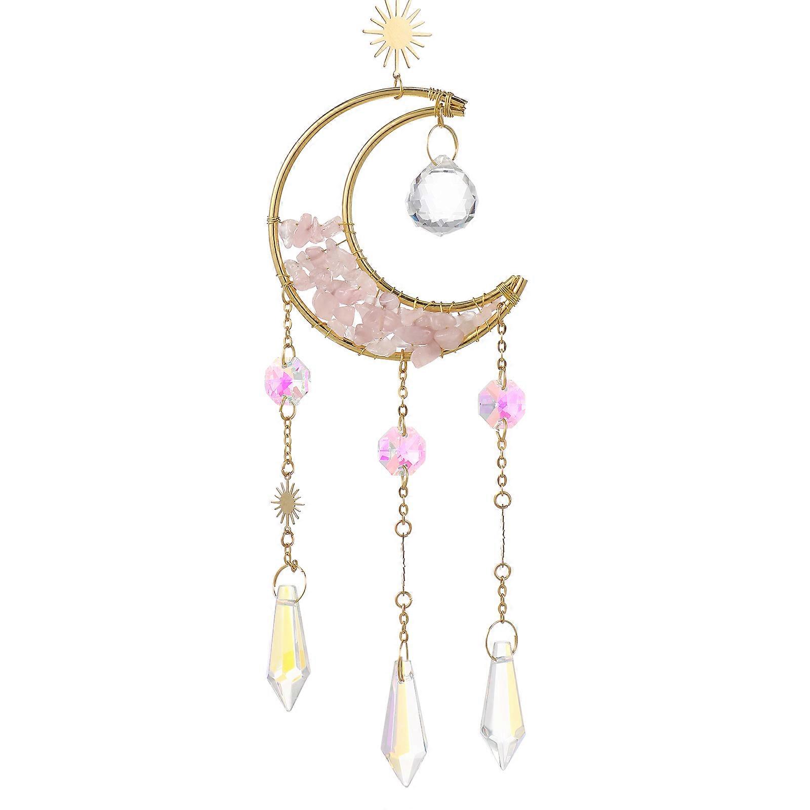 Pink Glass Hanging Decor for Window Home with Metal Strip Durability Ensured 7.5 Inches