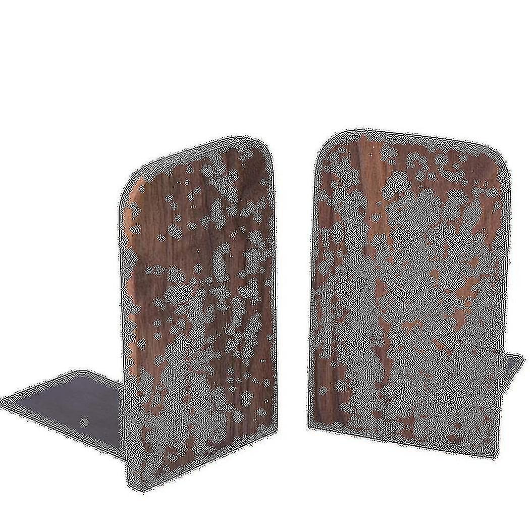 Style]- Dark walnut texture makes the book holders look vintage which are nice decoration of your room.Name:Wooden BookendsSpecification:Colour:As shownMaterial:Wood + metalSize:13*10*8cmPackage Contents:2* BookendsNote: Please set the sturdy book stands on horizontal place.Keep the two book ends together as possible to avoid tilting due to uneven force.Clean the book holder with clean dry cloth.
