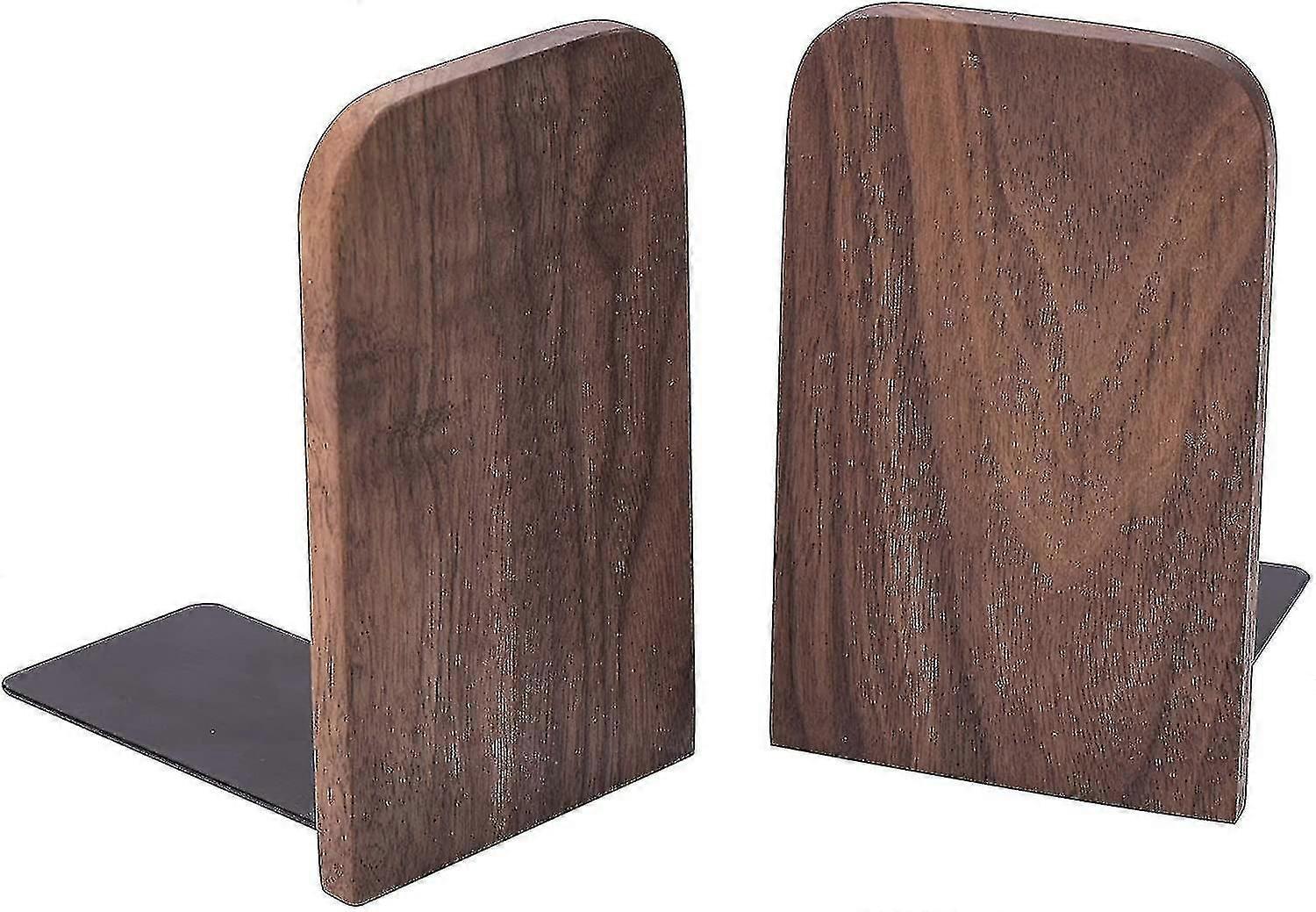 Vintage Wooden Bookends With Metal Base, Set of 2 Heavy Duty Black Walnut Book Stand