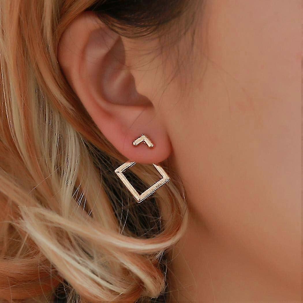 Metal Alloy Geometric Hollow Square Diamond Stud Earrings Boho Style For Women Girls Gold