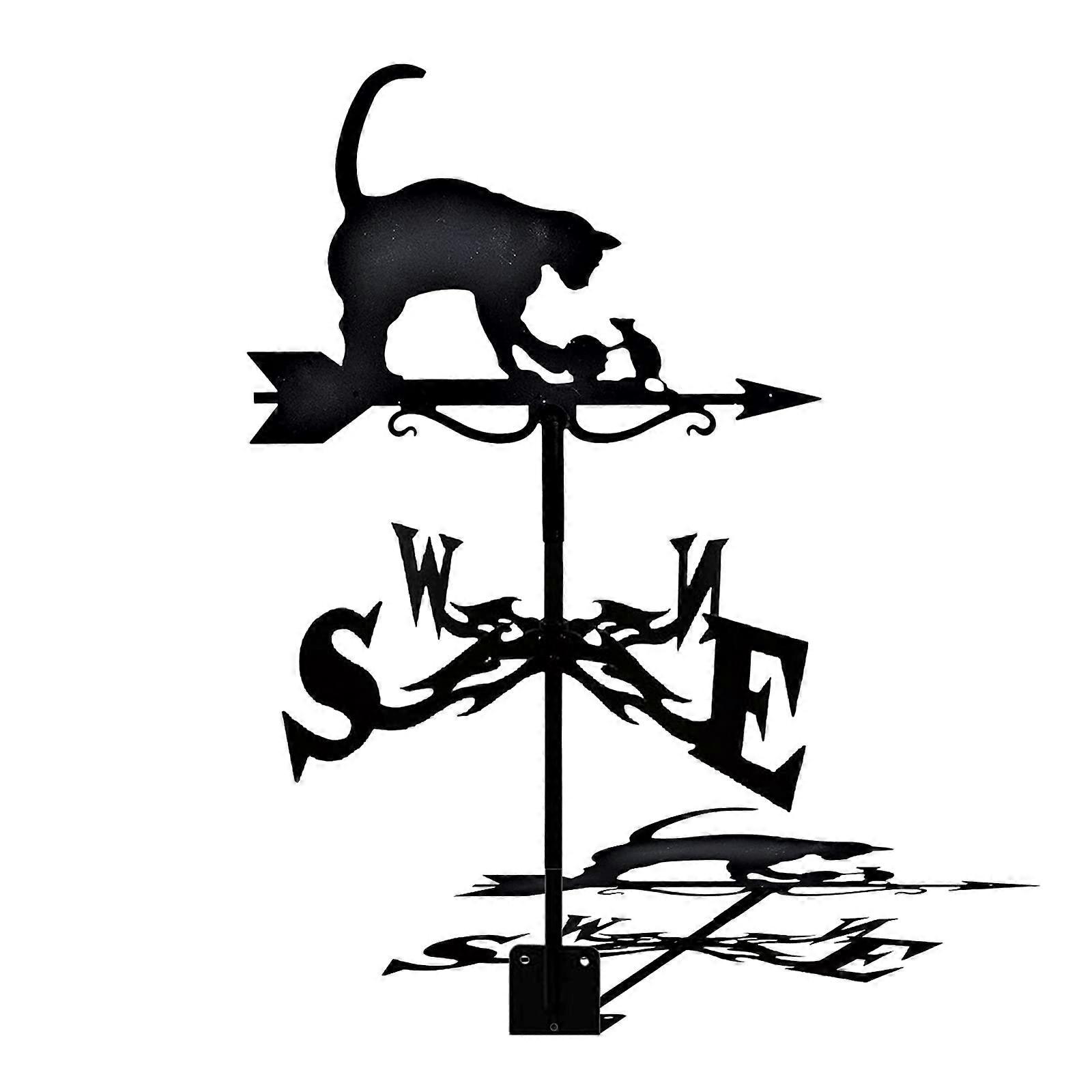 Metal Outdoor Patio Weathervane - Wrought Iron Cat and Mouse Wind Vane with Roof Mount - Stainless Steel Garden Decor