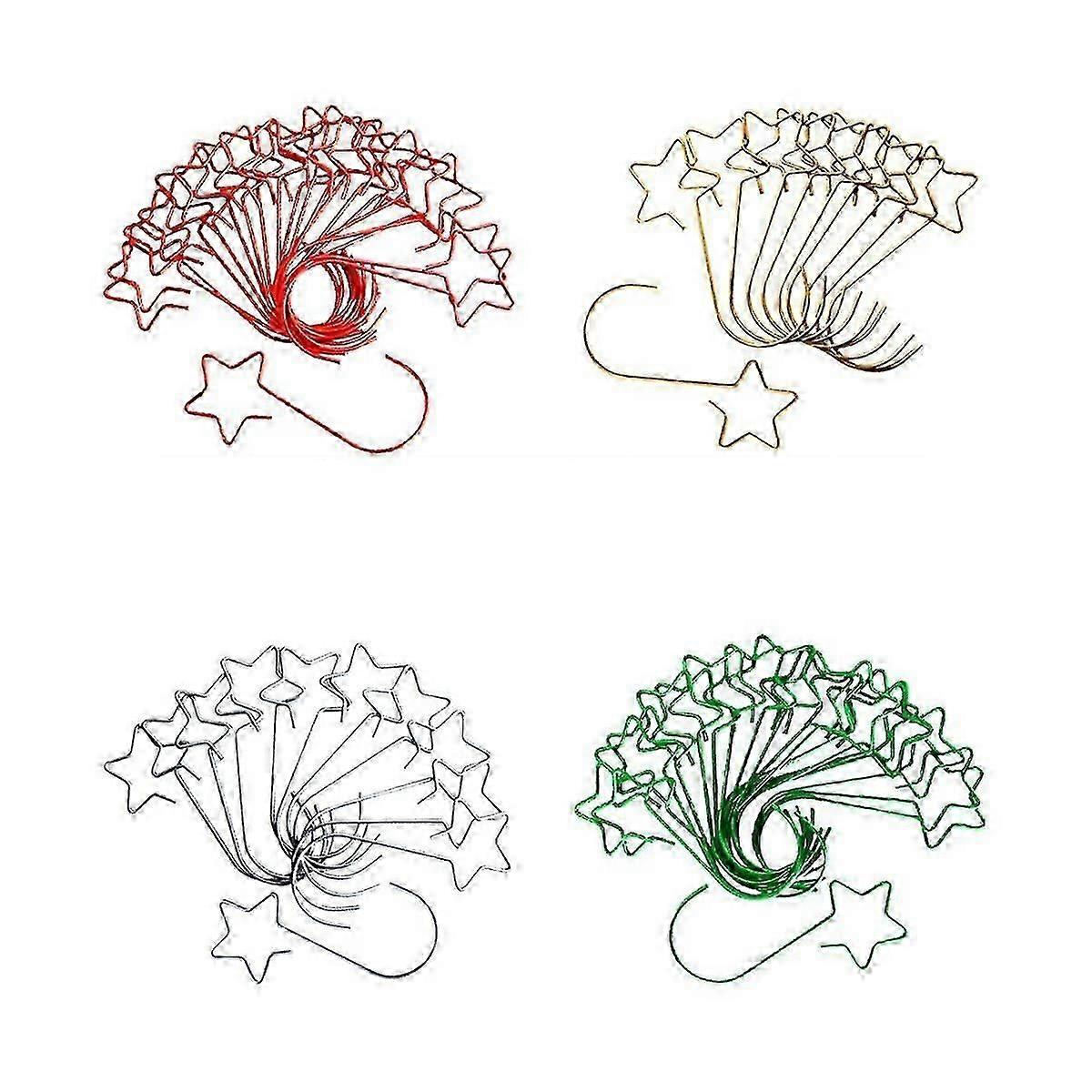 Material: high-quality metal.which have a five-pointed star design.Easy to use: It is uniquely designed to be removed from the tree, just hook one end to the decoration and the other end to the tree branch.Safe and sturdy: To that your souvenirs or fragile decorations will not fall from the tree.Widely used: Decorative hooks are very suitable for hanging Christmas ornaments and are widely used for party decoration, flower arrangement and collection display.Name:Hook for Colour:Silver & Gold & Green & RedMaterial:Galvanized steel+PlasticSize:21x50mmPackage Contents:160 * Christmas hooksOnly the above package content, other products are not included.Note: Light reflection and different displays may cause the color of the item in the picture a little different from the real thing. The measurement allowed error is +/- 1-3cm.