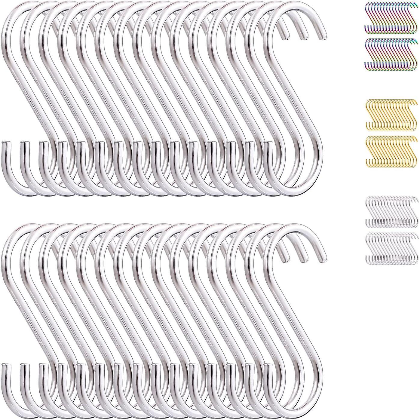 Metal Heavy Duty S Shaped Hooks, Stainless Steel Hooks Pack of 30 for Hanging Hangers, Kitchen Pan P
