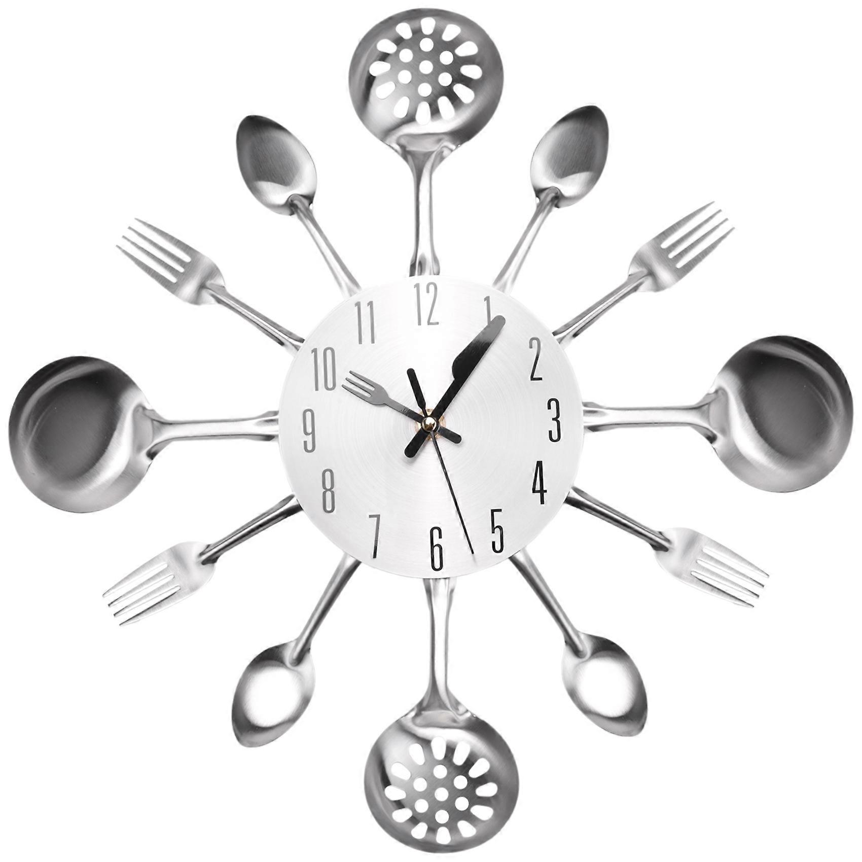 Metal Kitchen Cutlery Wall Clock 14 Inch for Home Decor,Silver