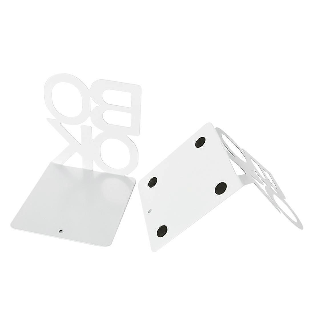 Metal Bookends Book Alphabet Shaped Non-Slip Bookends Book Organizer for Office, Workspace, Home Decor, Gift, 1 Pair (White, Height 140mm)