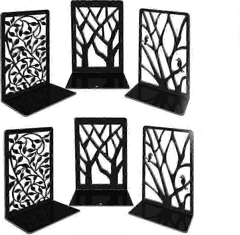 Metal Bookends Press Wedge Design Book Stopper, Bookmark Included, Sturdy Bookends for Bookshelf, Library, Office, Schools, Bookstore, 6 Pack Black
