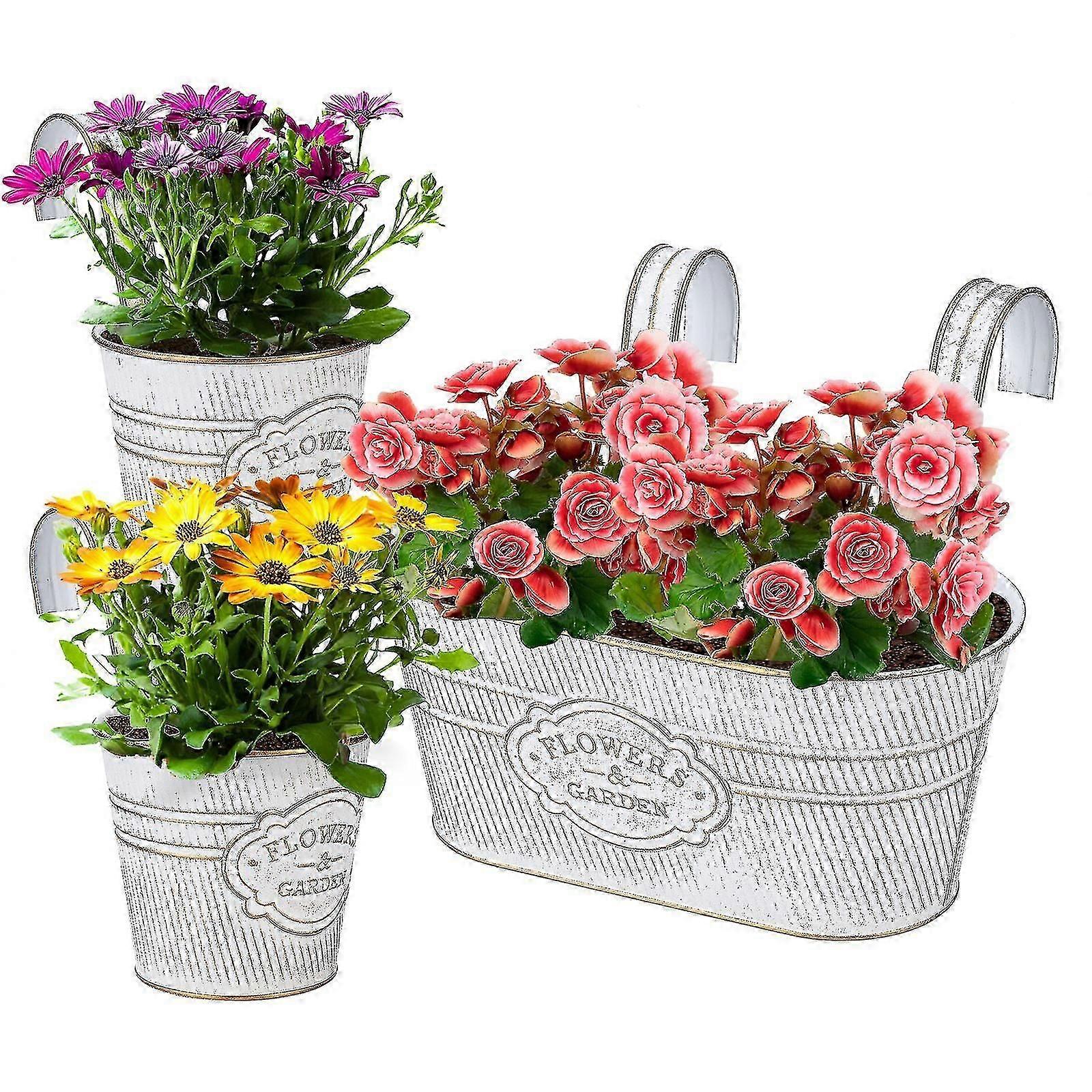 Features 1. Decorative Hanging Planters: Add greenery to any space with these wall planters. Eye-catching plant holder pots that are great for housing succulents, cacti, herbs, or flowers. 2. Drainage Holes: The drainage hole at the bottom of the flower pot can excess water and prevent the root of the plant from rotting. 3. Detachable Hook: The hanging planters hook can be installed and unloaded to meet your various needs. 4. Not Easy to Rust: Hanging plant pots are made of durable metal iron and ideal for the creative gardener, not easy to rust and deform, corrosion resistant, strong and durable, The flower pots will not rust even in the outdoor environment. 5. Beautiful Decoration: Use hanging balcony planter to decorate your home and garden. Balcony bucket planter can be used with dried flowers, silk flowers, potted plants, decorative pots outside. Hanging on the balcony, window, fence, railings, indoor and anywhere. Specification Material: Metal Color: White Package Size: 27 15 12 cm Weight: 500 g Package Include: 3 Metal Flower Pot