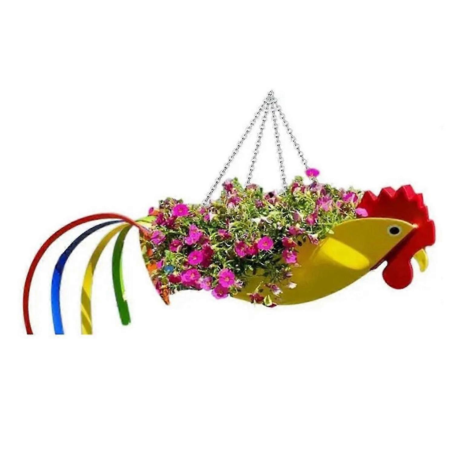 Metal Flower Pot Exquisite Shape Colorful Rooster Flower Pot Hanging Planter Garden Decorative Flower Pots,L,E