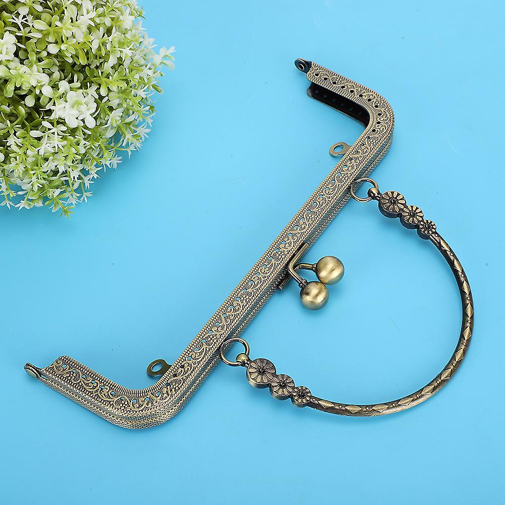 Metal Purse Frame Kiss Clasp Lock Bronze Tone Retro Square Embossed Portable Handle 20.5cm