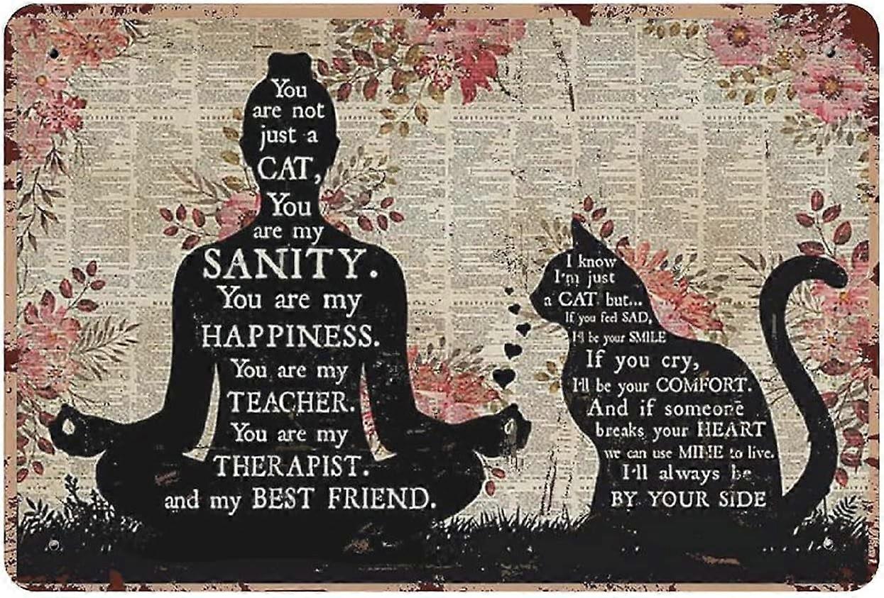 Metal Tin Sign Yoga Girl And Cat Tin Sign Metal Aluminum Sign Vintage Wall Decor Retro Poster for Bars Restaurants Cafes Pubs Home Decoration 12"x16"