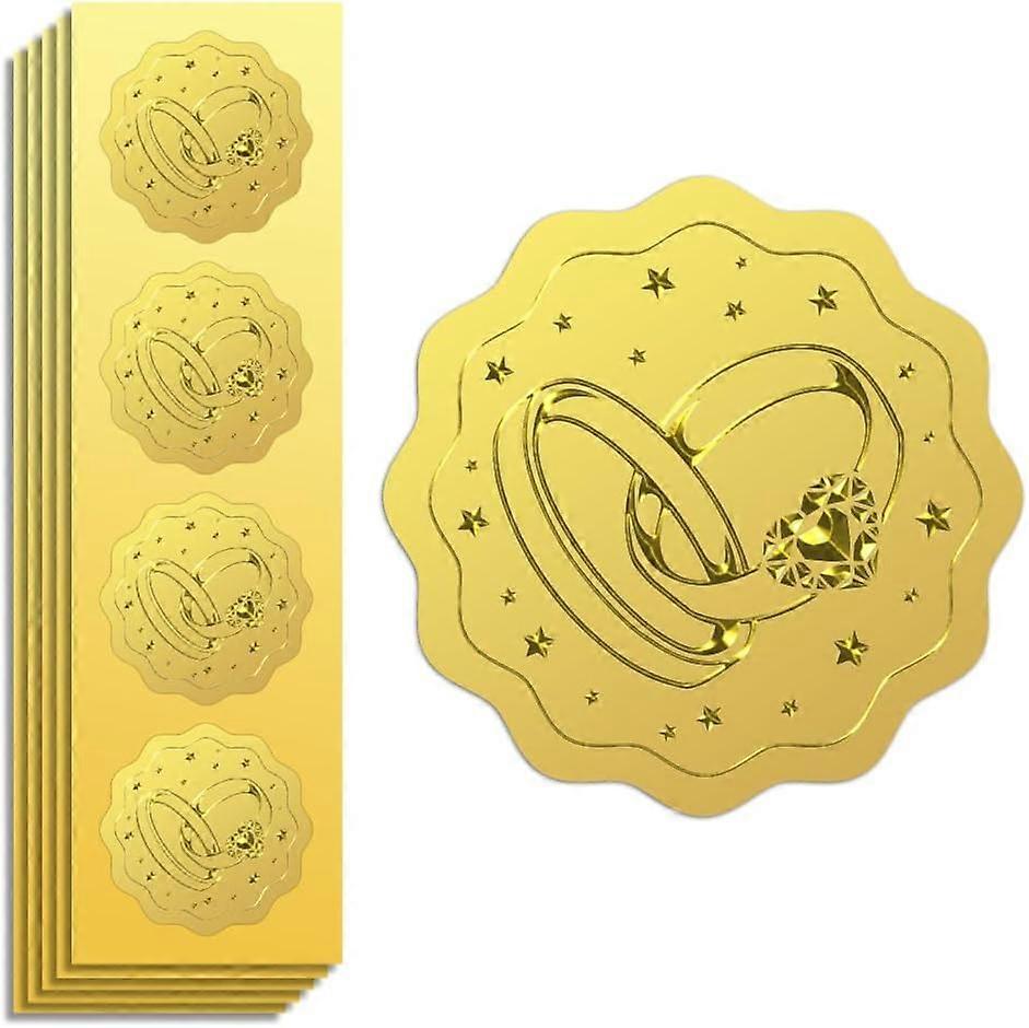 Gold Foil Stickers Seals Embossed Wedding Rings 2 Inch 100Pcs Self Adhesive Gold Stickers for Wedding Invitation Wedding Anniversary Valentines Day Gi