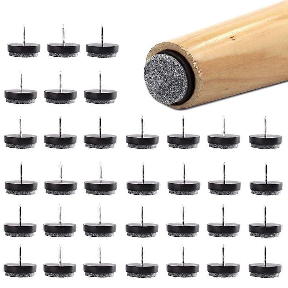Pack of 48 felt gliders with nail, diameter 24 mm, black felt gliders nail, 4 mm thick felt chair glides for protecting hard floors, for wooden furnit