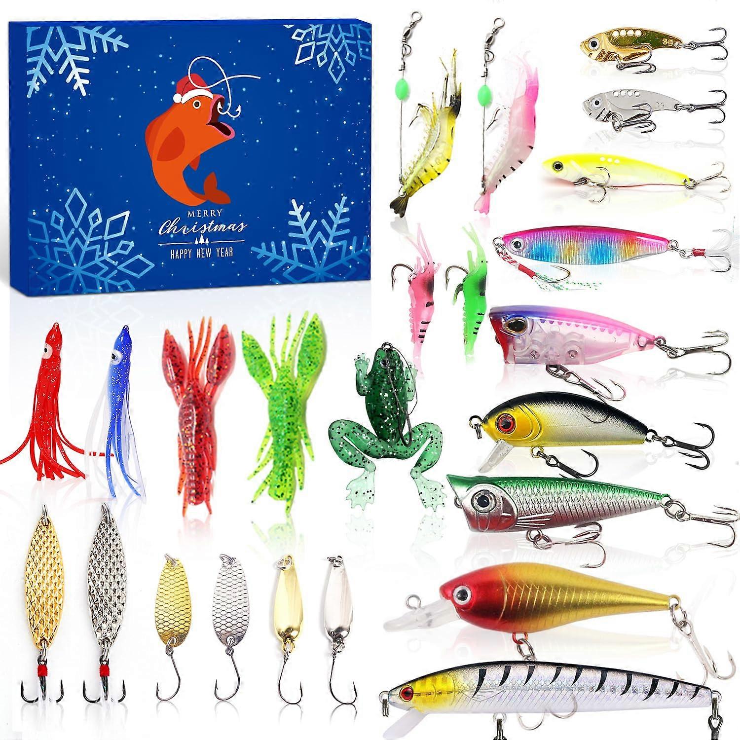 Fishing Advent Calendar Adult Men 24 Day Fishing Lure Countdown Calendar with Spoons Minnow Popper Crankbait VIB Xmas Fishing Gift for Christmas