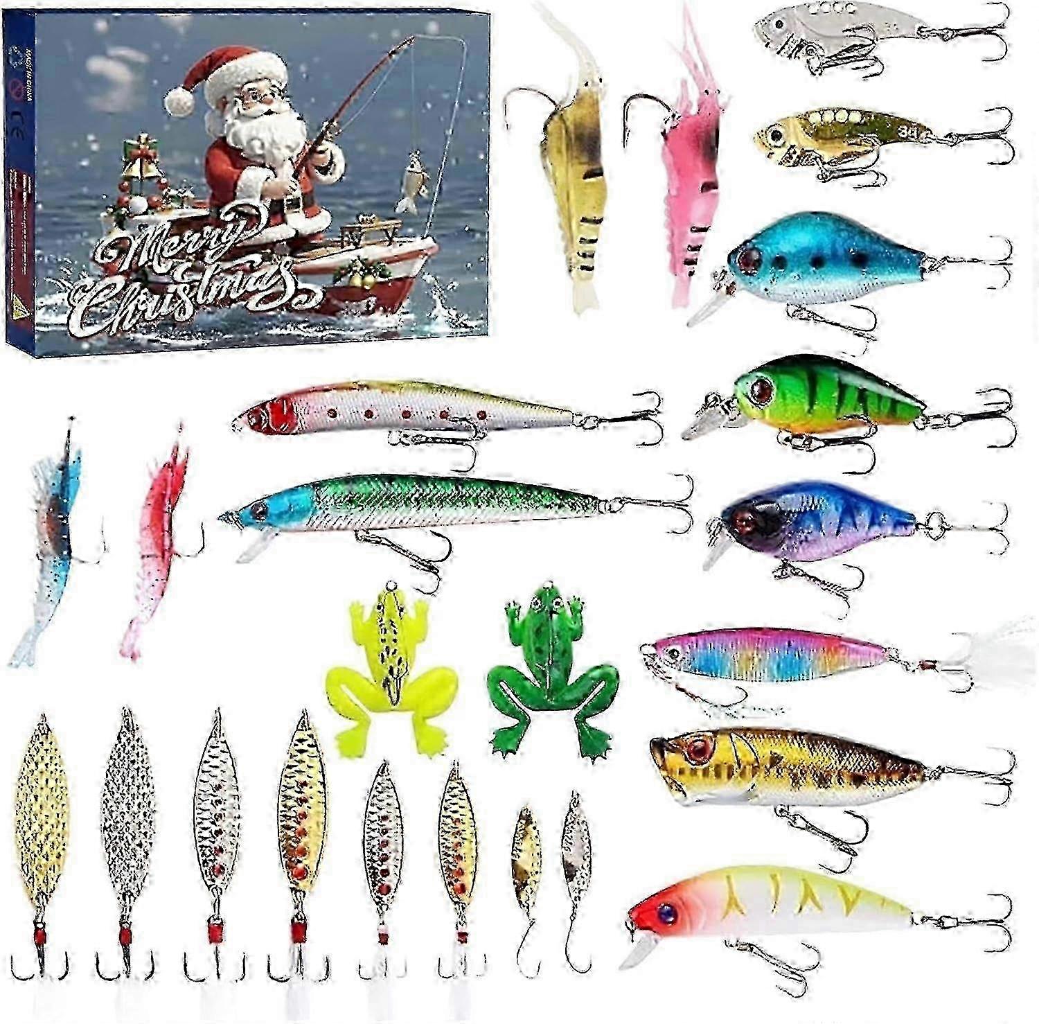 Fishing Advent Calendar 2024, Fishing Lure Advent Calendar, 24 Days Christmas Countdown Advent Calendar For Anglers Adult Men Teen Boys, Xmas Fishing