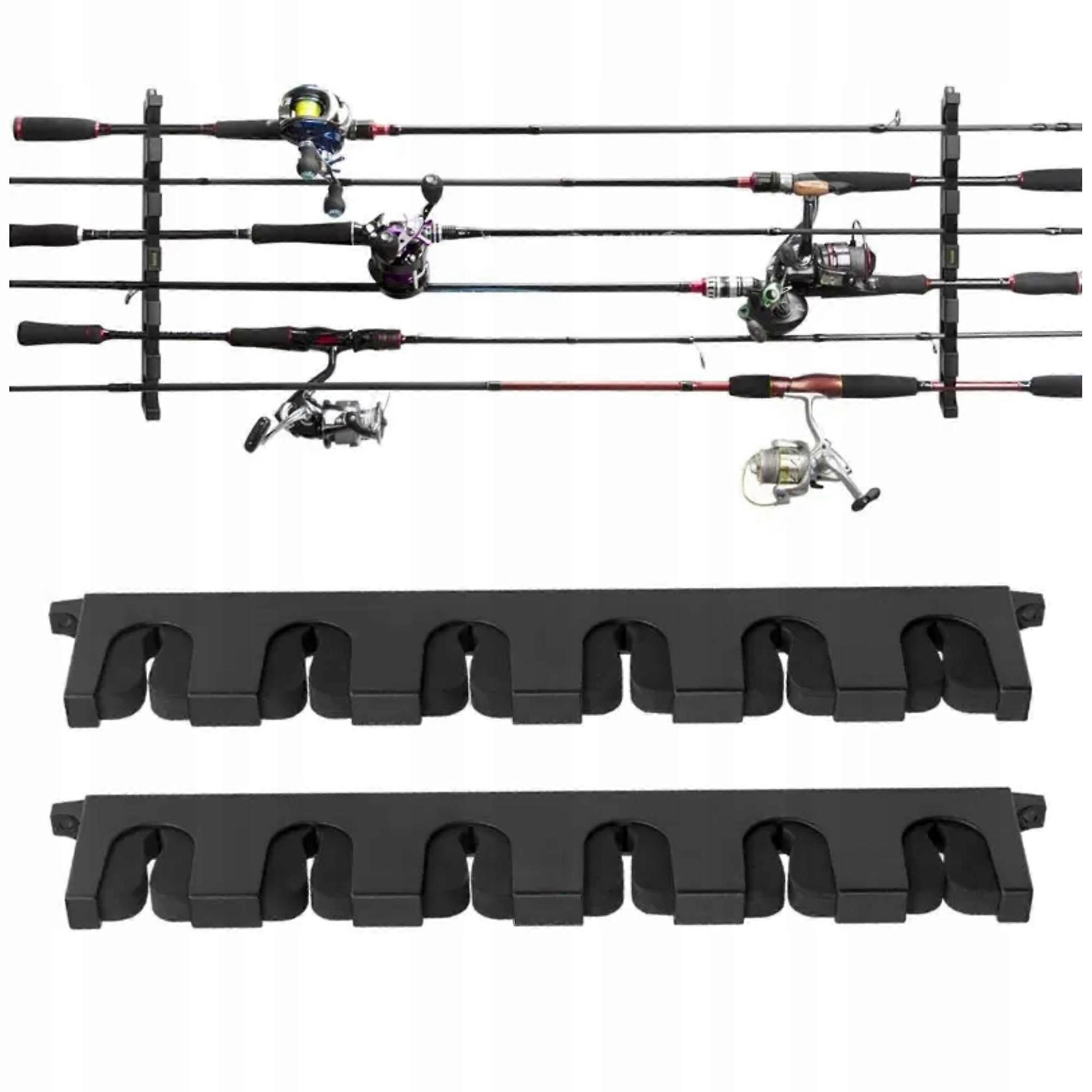 Fishing Rod Holder Wall Hanger Horizontal Stand For 6 Rods Pegs