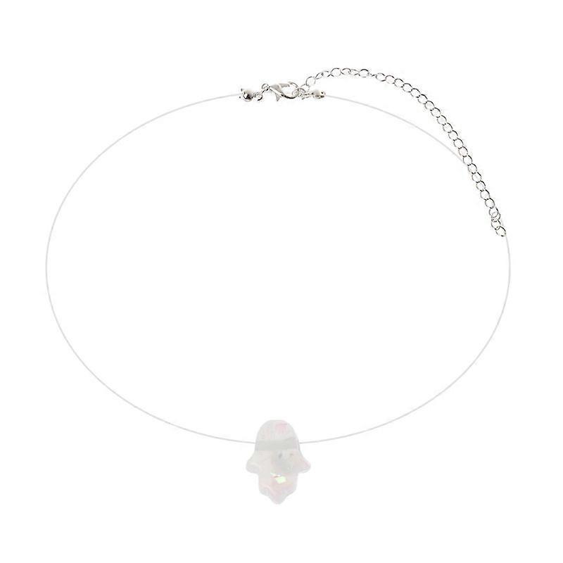 Fishing Line Choker Invisible Hamsa Hand Opals Pendant Necklace Gift for Women