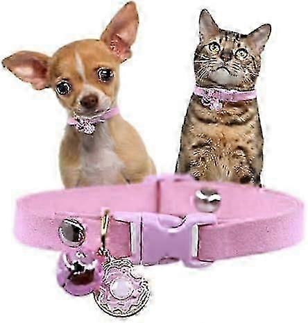 15-20cm Dog Collar with Bell, Pretty Tiny Girl Kitten Collar Female Puppy Collar with Bells for Pet Little Dogs Cat Animal, Pink 2025